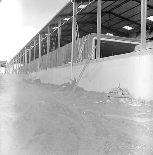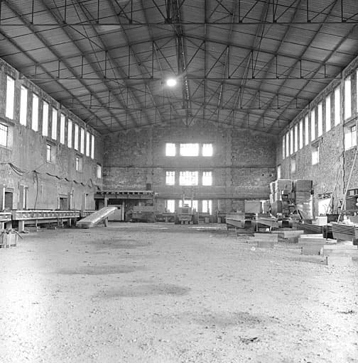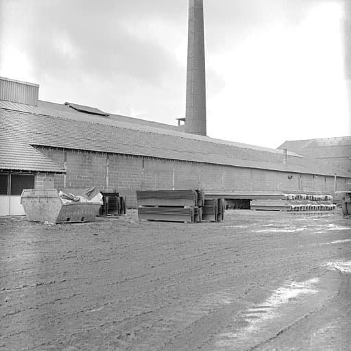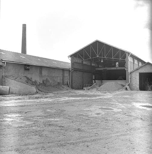 atelier de fabrication ; four industriel ; hangar ; entrepôt industriel ; cheminée d'usine ; aire des produits manufacturés ; bureau d'entreprise ; pont-bascule ; logement patronal ; cité ouvrière