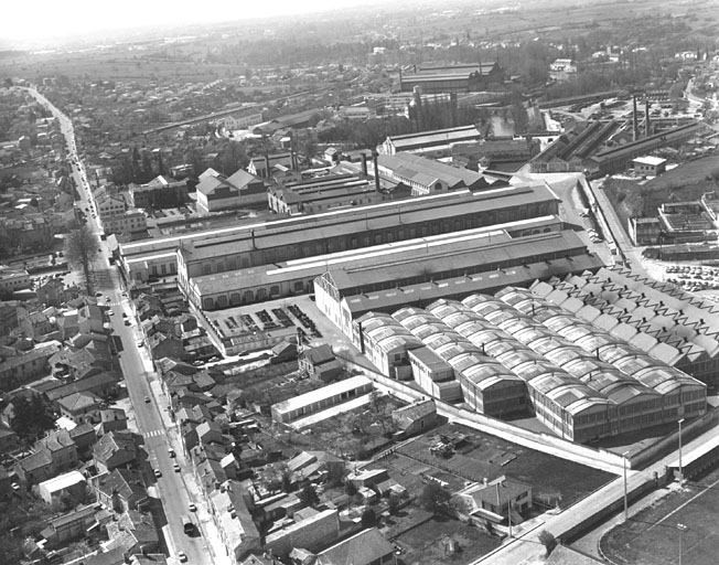 Site industriel desservi par embranchement ferroviaire ; les bâtiments des 18e et 19e siècles sont en moellon ou pierre de taille ; les ateliers du début du 20e siècle sont en pan de fer, les plus tardifs en pan de béton rempli de brique, avec charpente métallique apparente, couverts au début de tôle ondulée, remplacée plus tard par du ciment amiante ; les ateliers d'ajustage sont en béton avec shed ou toit bombé ; le bureau est à trois étages, l'école à un étage, et la plupart des autres bâtiments sont en rez-de-chaussée. Surface du site en m2 : 518000 ; surface bâtie en m2 : 120000