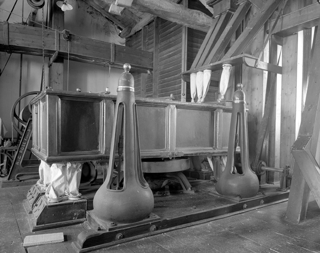 Minoterie construite en 1907, à la place d'un moulin à papier mentionné au 17e siècle et transformé en moulin à blé au 18e siècle. Le logement patronal est sûrement du 19e siècle. Activité de moulin à huile à une époque inconnue.£Les machines de la minoterie sont toutes de 1907 : deux cylindres, le nettoyeur à grain et la bluterie, tous de H. G. Rose frères, de Poissy, et un plansichter ; Deux presses à vis pour le moulin à huile de noix, dont le meuleton est actionné par une roue hydraulique d'en bas à palettes droites