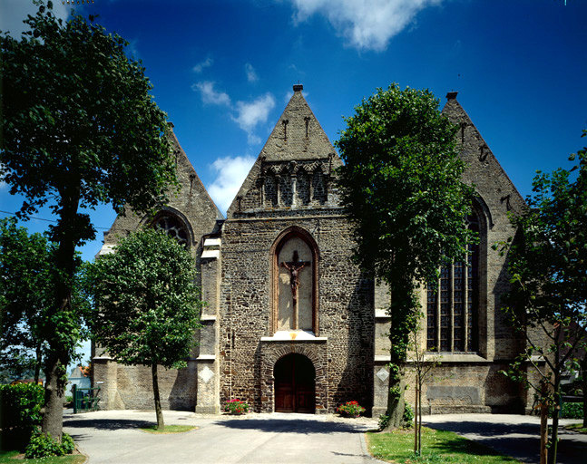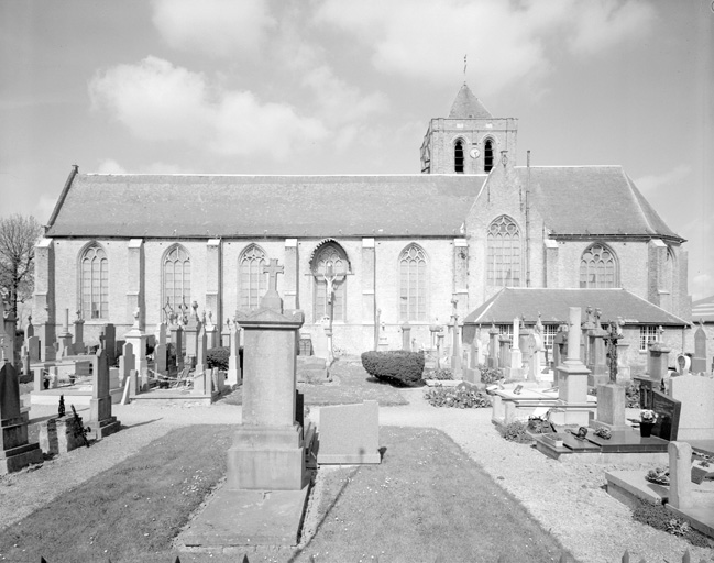 Fondation d'un sanctuaire par les moines de l'abbaye Saint-Winoc au 11e siècle, sur le site du village de Quaëdypre. D'une église bâtie au 11e ou au 12e siècle subsiste l'élévation ouest qui forme la travée centrale de la façade actuelle, et des éléments de l'ancien transept : partie inférieure de l'élévation nord et base des piliers qui supportent la tour de la croisée. Choeur rebâti vers 1537 (date inscrite sur un culot ornant l'abside médiane). Eglise vraisemblablement ruinée lors des troubles religieux de la fin du 16e siècle, et reconstruite sur un plan plus vaste entre 1601 et 1618 : chevet vers 1601 (date inscrite au sommet de l'abside médiane) , tour de la croisée en 1610 (date inscrite sur la face sud de la tour) , vaisseau sud avant 1617 (date en fers d'ancrage sur le pignon sud) , vaisseau nord avant 1618 (date inscrite sur le pignon nord)