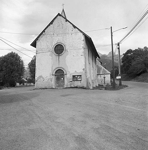 Une église Sainte-Catherine datant de la fin du 13e ou du début du 14e siècle fut construite dans l'enceinte du château féodal qui dominait le hameau. Elle fut incendiée en 1425 puis détruite par les Protestants au 16e siècle et reconstruite au pied de la colline sans doute au 17e siècle, à l'emplacement de l'édifice actuel. Celui-ci, construit vers 1845, a remplacé une église trop petite, dont la voûte était en planches, le toit en ardoise et le sol pavé. La nouvelle église aurait été bénie en 1865. Le décor peint serait dû au Suisse Escalla Rocho. Sur la porte ouest, à l'intérieur, est gravée la date 1878. Sur le seuil de la porte sud est gravée une date effacée. Le socle de la croix monumentale située à côté de l'église est daté de 1783. Il s'agit sans doute de la croix du cimetière qui entourait l'église et fut transférée sur le site de l'ancien château en 1837. En 1912, la toiture a été réparée avec des ardoises de Savoie
