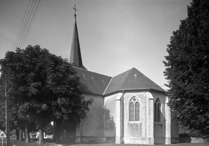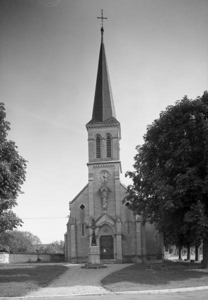 Eglise construite de 1860 à 1862 sur les plans et devis de Phal-Perron architecte à Auxonne, par Billiette Aîné entrepreneur à Dijon. Date 1860 gravée au-dessus du portail