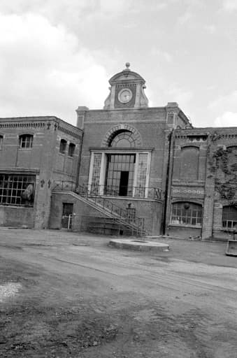 conciergerie ; bureau d'entreprise ; logement patronal ; chaufferie ; cour ; cheminée d'usine ; voie ferrée ; atelier de fabrication ; entrepôt industriel ; logement d'ouvriers ; jardins ouvriers