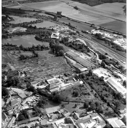atelier de fabrication ; cheminée d'usine ; cour ; bureau d'entreprise ; bâtiment d'eau ; transformateur (abri) ; magasin industriel