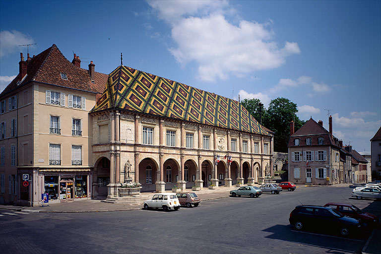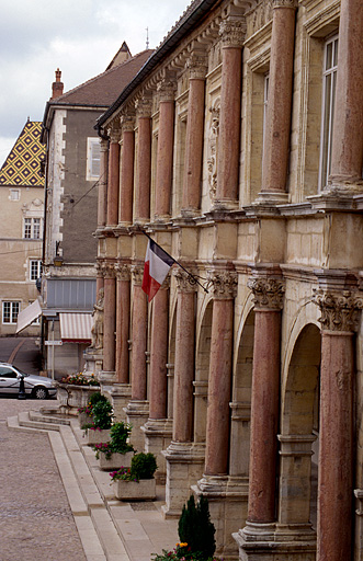 1532 : acquisition de terrains pour construire un nouvel hôtel de ville ; 1567 : début des travaux sous la surveillance de l'architecte bisontin Richard Maire ; maître d'oeuvre : François Moris, maçon ; ornements en pierre de la façade par Jean Prévost ; 1571 : gargouilles exécutées par le sculpteur Pierre Symonin : ont sans doute disparu en 1708 lors d'une restauration de la façade antérieure ; 1572 : verrières exécutées par Jehan de Castille ; la même année, bénédiction de l'édifice par l'abbé de Corneux ; la porte d'entrée dans l'édifice porte la date 1568 ; au milieu du 18e siècle, aménagements intérieurs peu importants pour accueillir le présidial ; devis de Lerondelle en 1742, de Julien Marcel Vassaux en 1752 et Jean Querret-du-Bois en 1754 ; 1837 : aménagement s intérieurs importants et consolidation de l'édifice d'après un devis conjoint de l'architecte Christophe Colard et du peintre Charles Couché, qui se charge en particulier du dessin des boiseries ; le grand escalier tournant à retours sans jour à 2 volées visible sur les plans de Lerondelle en 1742 est alors transformé en escalier tournant à retours avec jour à 3 volées ; en 1859, armes de la ville sculptées sur la façade antérieure par Constant Grandgirard en remplacement des anciennes armoiries ; cadran solaire exécuté sans doute à la même époque ; entre 1858 et 1859 : extension de l'hôtel de ville pour l'installation d'une bibliothèque avec un local des pompes en rez-de-chaussée ; sur une fenêtre du 1er étage, monogramme AR