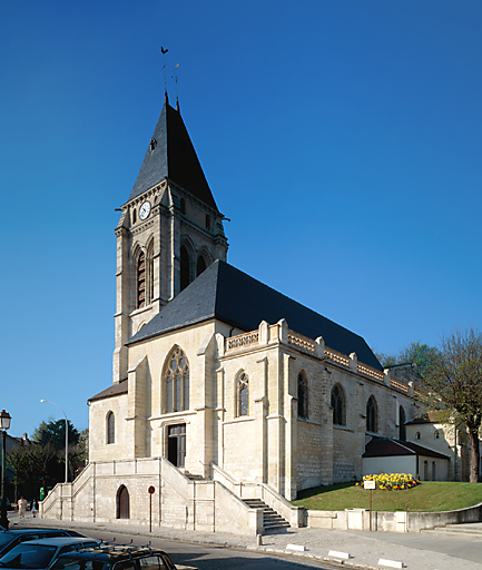 Attestée dès le 9e siècle par le polyptique de l'abbé Irminon, l'église paroissiale Saint-Leu-Saint-Gilles fut reconstruite à la fin du 12e siècle ou au début du 13e siècle : il en reste le clocher et le gros mur sud de la nef. Choeur et nef réédifiés dans la 2e moitié 15e siècle. Dédicace et consécration en 1484. Eglise désorientée à cette époque ou au 16e siècle. Portail du 16e siècle. Au 16e ou 17e siècle, un bas-côté remplaça au nord le réfectoire d'une maladrerie. 1891-1892 : reconstruction du même bas-côté dans le style néo-gothique par l'architecte communal Paul Langlois. 1893 : construction du perron actuel. 1912-1919 : restauration du clocher par Paul Langlois et Marcel Prud'homme, architectes communaux