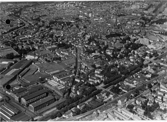 Cité en 1153 puis en 1186 au cours d'un voyage de l'empereur Frédéric de Hohenstaufen, le village de Mulhouse dépendait de l'évêque de Strasbourg, mais c'est l'empereur qui transforma l'agglomération en ville en 1223 ; en 1308 Mulhouse devint ville impériale et en 1354 elle participa à la formation de la décapole ; en 1506 elle devint l'alliée de la confédération helvétique ; la république de Mulhouse resta indépendante jusqu'en 1798, date de la réunion à la France ; jusqu'à cette date l'agglomération resta limitée à l'intérieur du mur d'enceinte, dont le démantellement fut réalisé autour de 1810 ; l'industrie qui avait vu le jour en 1746 et qui connut un développement rapide provoqua une extension de la ville en dehors du mur d'enceinte dès le début du 19e siècle ; celle-ci ne fut cependant pas très rapide ; des faubourgs clairsemés se constituèrent le long des routes allant à l'extérieur, puis en 1826 le premier projet d'urbanisme concerté fut réalisé, celui du nouveau quartier ; après 1850 avec la construction d'une cité ouvrière et d'usines à l'ouest, l'agrandissement de l'agglomération est de plus en plus rapide : en 1911 elle rejoint les communes voisines de Dornach et de Modenheim ; au cours du 20e siècle la totalité du territoire communal, augmenté des villages de Dornach et de Bourtzwiller est urbanisé ; en 1990 la ville compte 109495 habitants
