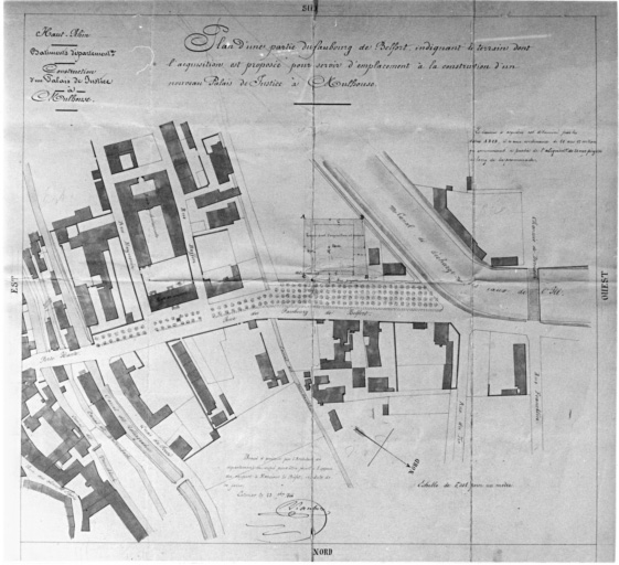 Le tribunal est construit en 1877 par Dietrich, architecte départemental ; il est inauguré le 1er octobre 1878, son décor s'inspire de la Renaissance italienne florentine ; en 1980 un étage est ajouté couvert d'un nouveau toit