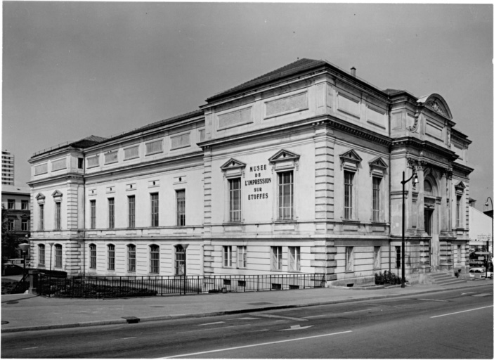 Construit de 1880 à 1883 à côté de la léproserie et de la chapelle Sainte-Catherine détruites en 1826, le musée est commandité par la société industrielle de Mulhouse ; le projet est l'oeuvre de Frédéric Louis de Rutte, architecte suisse ayant travaillé en Alsace déjà avant 1870 ; le bâtiment abrite la halle aux blés municipale, le musée archéologique, historique et des beaux arts ; bombardé en 1944 il est restauré et accueille en 1961 le musée de l'impression sur étoffe, inscription sur pierre de fondation avec date 1881