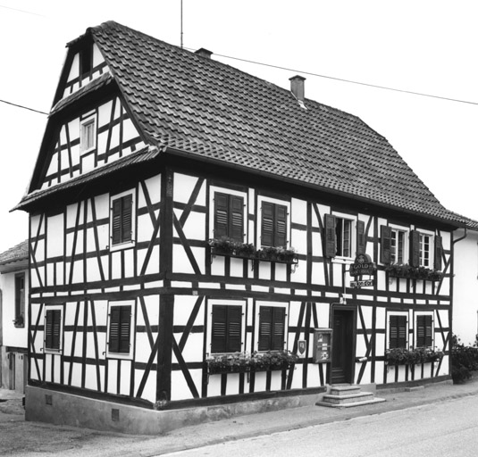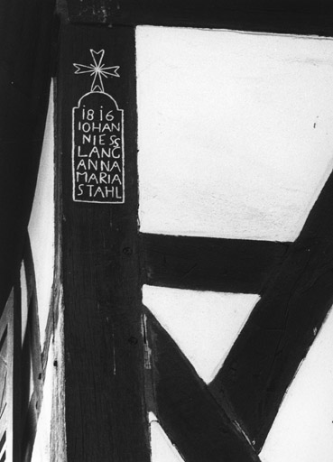 Ce restaurant est daté 1816 avec inscription relative aux premiers propriétaires sur le poteau cornier ; l'aile en équerre date de la fin du 19e siècle