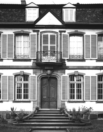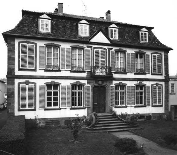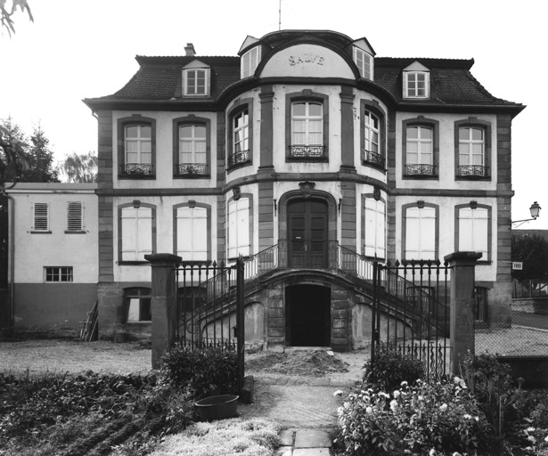 Château érigé en 1750 par François Frédéric de Geiger, bailli de la seigneurie de Soultz de 1741 à 1783 ; la cour d'honneur fit place en 1908 à l'édification de l'église ; endommagée lors des bombardements de 1945 ; décor intérieur disparu lors de transformations en 1960 ; après la Révolution, fut la propriété de Charles Victor Pouillot, maire de Soultz de 1848 à 1868, puis de Charles Binder de 1883 à 1901 ; acquis par la paroisse catholique pour servir de presbytère depuis 1902