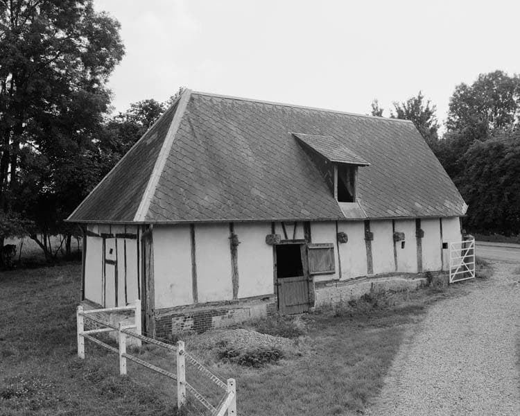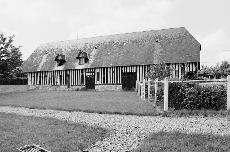 cour ; jardin potager ; verger ; resserre ; bûcher ; étable ; laiterie ; grange ; pressoir à cidre ; cellier