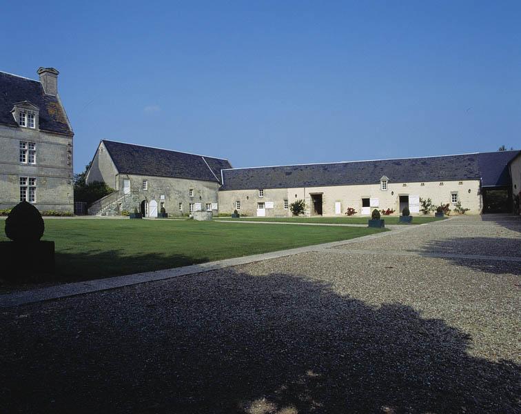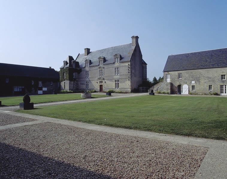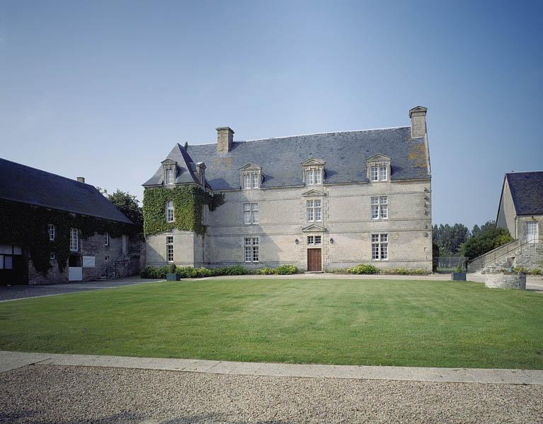 Manoir peut-être édifié pour les Novince, seigneurs d'Aubigny et barons de Crépon, dans la 1ère moitié du 17e siècle : le logis parait être l'ébauche d'un grand programme axial jamais réalisé ; logis inachevé : pavillon nord jamais construit, décor des cheminées incomplet ; transformé très vite en ferme à cour fermée, les bâtiments d'exploitation datant du 17e siècle ; remaniés par la suite