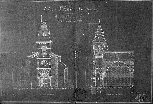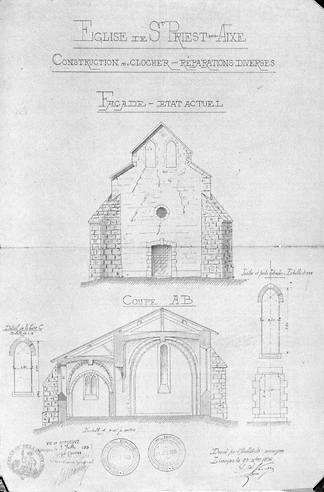 Eglise paroissiale Saint-Priest édifiée au 12e siècle ; dévastée par la guerre, en 1273, et réparée peu après ; reconstruction en 1496 avec adjonction de deux chapelles ; en 1681, recouverte de peintures dont il ne reste aujourd'hui que quelques traces ; de 1827 à 1870 : réparations diverses ; avril 1897 : rapport de l'architecte Geay concernant le projet de reconstruction du clocher ; projet dressé par l'architecte D. Vergez ; 24 juillet 1903 : adjudication des travaux de construction d'un nouveau clocher, remplaçant l'ancien clocher mur, à Rouffignac, directeur de la société, la Vaillante, située à Limoges ; 4 avril 1904 : inauguration du nouveau clocher ; 1934 : réparations de dégâts causés par la foudre