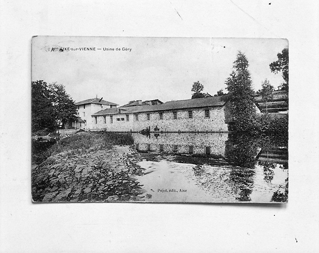 Moulins datant du 17e, 18e, 19e siècle ; en 1741, dans l'état des fonds de la commune d'Aixe-sur-Vienne sont recensés 24 moulins ; il s'agit surtout de moulins à froment, à seigle ; sont mentionnés également deux moulins à fouler le drap, un moulin à papier et un moulin à fer ; à partir du début du 19e siècle, transformation de certains de ces moulins en moulins à émail et à pâte à porcelaine ; mutation de certains de ces moulins en usines ; actuellement, une seule usine implantée sur le site de l'ancien moulin dit du Château est encore en activité
