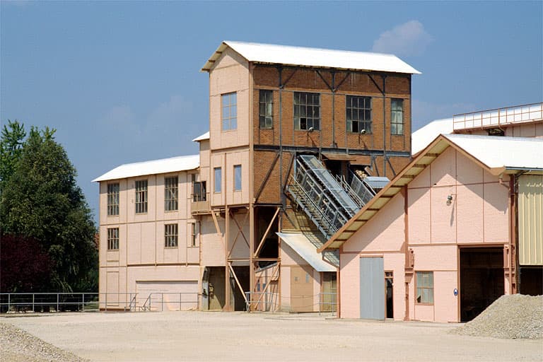 bureau ; laboratoire ; bureau d'études ; salle des machines ; aire de stockage du combustible ; chaufferie ; cheminée d'usine ; transformateur ; atelier de fabrication ; aire de fabrication ; four industriel ; tour de réfrigération ; bassin de décantation ; excavation ; aire de lavage ; entrepôt industriel ; aire des matières premières ; magasin industriel ; hangar industriel ; réservoir industriel ; silo ; aire des déchets ; poudrière ; atelier de réparation ; corps de garde ; vestiaire d'usine ; bains douches ; infirmerie ; cantine ; local syndical ; stationnement ; voie ferrée ; passerelle ; quai ; rampe d'accès ; pont bascule ; pont ; parc ; souterrain refuge ; caserne