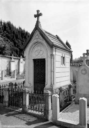 Edicule néo-gothique sobre, entouré d'un enclos rectangulaire à bornes reliées par des grilles en fer forgé (340 x 493) ; chapelle en pierre de taille de calcaire de comblanchien, côtés et dos à refends, arc brisé en façade, tympan aveugle sculpté en bas relief d'un trilobé et du nom de famille, vantail de porte en fer forgé ; toit à deux versants en pierre, surmonté d'une croix ; plaques funéraires et autel en marbre