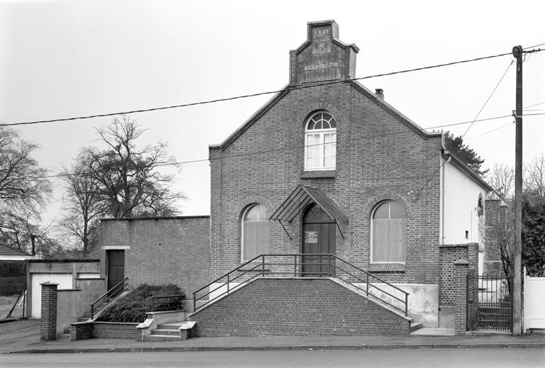 Le temple est construit entièrement en brique. Il présente un pignon découvert en façade portant l'inscription "1923 / culte antoiniste". Un escalier de distribution extérieur permet d'atteindre le rez-de-chaussée surélevé. Ce dernier est occupé par la salle de réunion, la salle d'opérations et une cuisine ; l'étage de comble étant constitué de deux pièces formant le logement du pasteur.