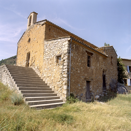 L'église est construite au sommet d'une éminence rocheuse. De plan rectangulaire, la nef unique est voûtée en berceau plein-cintre ; le chevet est plat. Un clocher arcade à une arcade plein-cintre surmonte la porte d'entrée. L'appareil est hétérogène : blocage de pierre calcaire, calcaire marneux noir, galets, blocs de calcaire grossièrement équarris noyés dans un mortier à base de gypse orangé, avec nombreuses inclusions de gravillons. Les chaînes sont en gros moellons mieux taillés : tuffeau et calcaire gris. L'élévation côté cimetière présente en partie haute un lit de tuiles canal encore visible ; les tuiles sont cassées net et indiquent l'ancien niveau du toit. L'enduit de façade est en très mauvais état et se craquelle en formant des plaques prêtes à se détacher du mur. Deux fenêtres à profond ébrasement s'ouvrent dans le mur droit de la nef. Le sol est pavé de carreaux en terre cuite. Le choeur est simplement surélevé d'un degré par rapport à la nef (même pavage). Dans la nef : 3 tirants transversaux et un tirant longitudinal. Un bâtiment est accolé à droite de la façade de la chapelle, appuyé contre le rocher. On y accède en étage de soubassement par une porte bâtarde. Une seconde porte, piétonne, donne accès à un escalier tournant en bois qui conduit en rez-de-chaussée surélevé à la sacristie.