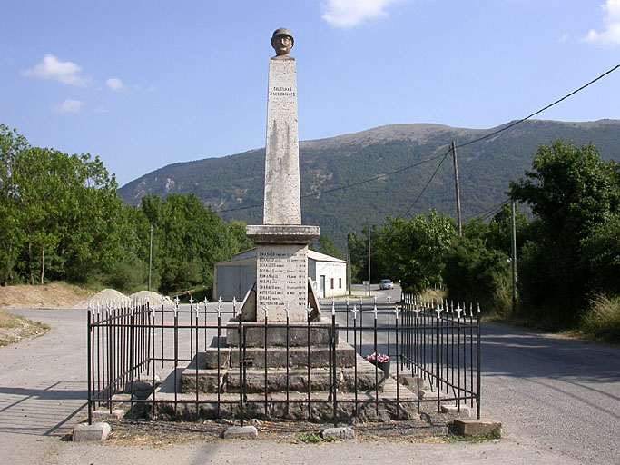 Offert en 1922 à la commune par un charretier nommé Toussaint Clariond, le monument n'a été installé qu'en 1927, après réclamation du donateur et acquisition du terrain nécessaire. La tête de soldat qui couronne le monument a été réalisée par le sculpteur C. Siotti.