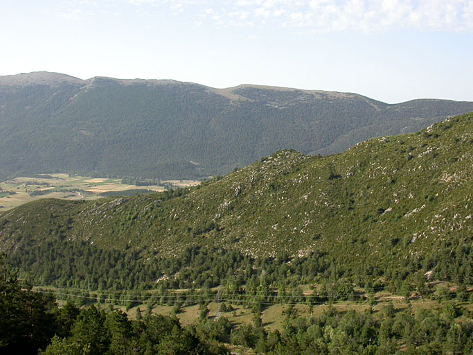 Epaulement à 1354 m d'altitude sur la crête de la ramification septentrionale du Teillon, dominant au nord le col de Saint-Barnabé, où passe la route de Demandolx à Saint-Auban et les anciens chemins de Castellane à Ubraye et à Verraillon, au sud la vallée de l'Estéron élargie en une cuvette assez spacieuse. Les versants très raides, entrecoupés de petits abrupts et recouverts d'une végétation arbustive dense, entourent une plate-forme aménagée et ceinte, du côté de la pente ascendante, à l'ouest, par un large fossé. Il ne reste rien des deux chemins d'accès, l'un à l'est en direction du village actuel, l'autre au nord vers le col de Saint-Barnabé. Les vestiges couvrent toute la plate-forme et le haut de la pente méridionale, où l'on voit encore une série de terrasses soutenues par des murs en pierre sèche. L'alignement des éboulis marque l'emplacement du mur d'enceinte et d'au moins une porte ouverte à l'ouest, vers le fossé. Sur le sommet, deux fragments de mur restés en place, avec leur parement en moellons équarris et assisés, appartenaient probablement au château. Les maisons du village, adossées à la pente et partiellement creusées dans le rocher, étaient aussi construites en moellons, avec des baies en pierre de taille (claveau d'arc) et couvertes de tuiles creuses (nombreux fragments dans les éboulis).