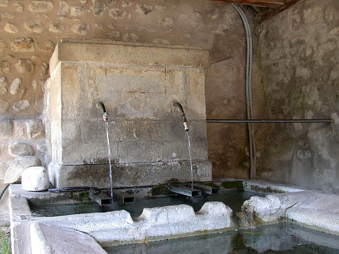 Le lavoir de la rue du Clocher est adossé à l'ancienne tour des remparts devenue beffroi de la ville. Il se compose d'un buffet d'eau en pierre de taille couvert d'une dalle à pointe de diamant. L'eau s'écoule par deux canons en fonte, elle est recueillie dans trois bassins en pierre de taille, de dimensions différentes, dont les margelles sont inclinées. Les bassins sont entourés de caniveaux en ciment et de caillebotis. Le lavoir est surmonté d'un toit à longs pans et d'une croupe prenant appui sur un mur de soutènement au nord et sur un poteau au sud. La charpente à faîtière comprend six arbalétriers doubles, deux sablières et deux entraits. Elle est couverte de bardeaux en mélèze. Une gouttière en bois permet l'écoulement de l'eau de pluie.