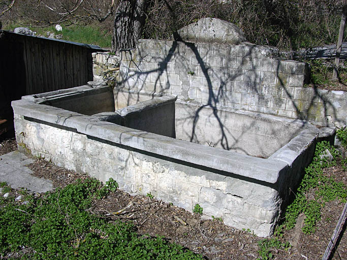 Ce lavoir est adossé au talus de la voie communale 01. Il possède deux bassins construits en moellons calcaires équarris et maçonnés. L'intérieur des bassins est recouvert d'un enduit de ciment. Le mur de soutènement adossé au chemin est bâti en moellons maçonnés et est recouvert d'un enduit ciment portant un faux appareillage gravé.