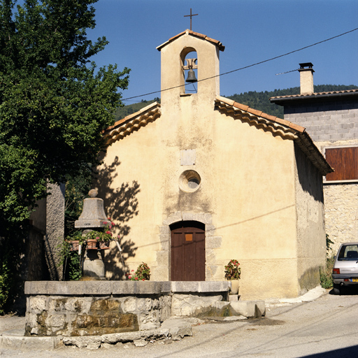 Petit édifice non orienté, formé d'un seul vaisseau voûté en berceau plein-cintre et couvert d'un toit à longs pans en tuiles creuses. Il est précédé sur la place du village d'un petit parvis au pavement en cailloux figurant une croix pattée. L'élévation antérieure ouvre par une porte en arc segmentaire en pierre de taille dont la clef saillante porte gravée la date 1787. Elle est surmontée d'un oculus rond ébrasé et d'une petite plaque en marbre blanc où est gravée l'inscription dédicatoire. Un clocher-mur à arcade en plein-cintre couronne le pignon que souligne une saillie de rive à double rang de génoise comme les avant-toits des élévations latérales. L'ensemble est construit en blocage de moellons bruts recouvert d'un enduit à la chaux. L'unique fenêtre, en arc segmentaire avec une embrasure voûtée en canonnière, est ouverte au sud. Un pavement en carreaux de terre cuite de 14,5 cm couvre le sol.