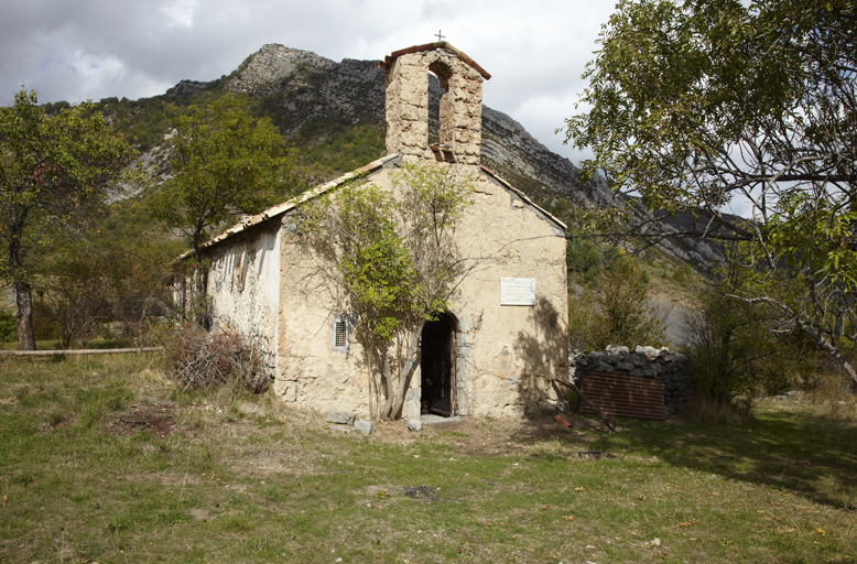 La chapelle de la Melle est implantée au fond d'un ravin sur un terrain plat auquel on accède par un chemin rural. L'édifice présente un plan allongé à nef unique à laquelle a été accolée une pièce servant de sacristie du côté ouest. Un clocher-mur à une baie en plein cintre qui abritait la cloche, aujourd'hui disparue, est situé dans le prolongement de la façade est. Les murs de la chapelle sont constitués de moellons partiellement enduits au gypse. La chapelle est couverte d'un toit à longs pans en tuiles creuses. La porte d'entrée est percée en plein cintre dans la façade est. De la pierre de taille calcaire en souligne l'encadrement. Au-dessus, est percé un petit oculus. Une seule autre ouverture rectangulaire est percée dans la façade nord. La partie accolée a été transformée en abri pour berger : une grande ouverture rectangulaire avec porte en bois y est percée, dans la façade sud. A l'intérieur, la chapelle est voûtée en berceau en plein cintre ; le sol est en carreaux de terre cuite vernissée et des fragments de peintures ornent encore le choeur. Une plaque commémorative fixée sur la façade relate l'arrestation de deux citoyens le 25 mars 1944. Le cimetière est accolé à la chapelle du côté nord. Il est clos par des restes de murs.