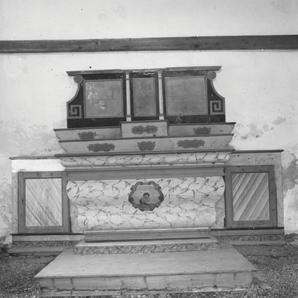 Plan rectangulaire ; clocher-mur à une baie couverte en segment sur le mur-pignon antérieur ; tribune en bois. Les extrémités des sablières qui supportent l'avancée du toit sur la façade antérieure sont profilées d'un talon. Inscriptions et dates gravées : [J] B [.] et [1]72[.] sur le bénitier engagé sur la façade antérieure, VV 179[7] dans l'enduit de la fenêtre de la façade gauche.