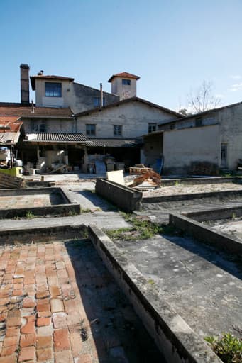 logement patronal ; cheminée d'usine ; aire de fabrication ; atelier de fabrication ; bassin de décantation ; vestiaire d'usine ; bureau ; magasin industriel