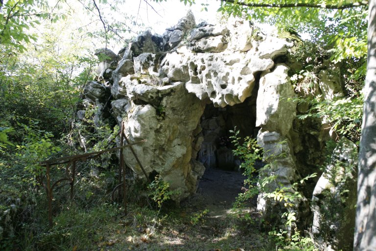 grotte artificielle ; fabrique en belvédère ; ruine artificielle ; rocher artificiel ; lac de jardin ; pièce d'eau