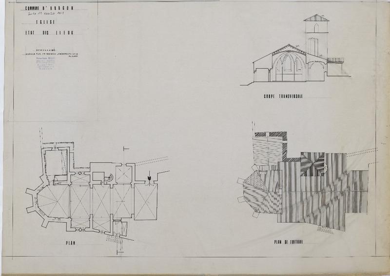 Un acte de 1240 de l'abbaye de Caunes mentionne le nom du chapelain de l'église d'Aragon. L'église paroissiale Notre-Dame est citée dans l'Enquête de 1269. En 1525, il est question de réparations à faire à l'église. Une nouvelle sacristie voûtée fut construite en 1890 au sud du chevet. La nef unique fut couverte de fausses voûtes d'ogives au 19e siècle. La première travée de la nef s'écroula en 1988 et révéla une charpente peinte des premières années du 14e siècle. Les corbeaux et les pannes faîtières peints furent dégagés et la première travée de la nef fut reconstituée dans son état d'origine. Les corbeaux et les pannes sont actuellement exposés dans l'église.