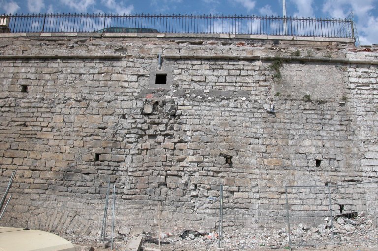 La place de la Capelle est située hors des limites de la ville médiévale, en dehors des fossés, au nord-est. Des travaux d'aménagement ont permis, entre 2006 et 2007, de mettre au jour le mur de soutènement élevé au 18e siècle afin de doter la ville d'une esplanade plane. Le terrain marque en effet une pente depuis l'extrémité de la rue de la Capelle jusqu'aux berges du Tarn. La place est cantonnée de trois murs de pierre de taille de grès, deux orientés à l'est reliés par un mur perpendiculaire. Affectant un fruit, ils sont aussi sommés de parapets reposant sur un bandeau. Une fontaine est adossée au mur sud-est contre lequel une voûte a pris appui dans un second temps, protégeant la fontaine. Plus tard, des bâtiments, des mégisseries, ont été ajoutés le long de ces murs, les masquant entièrement.
