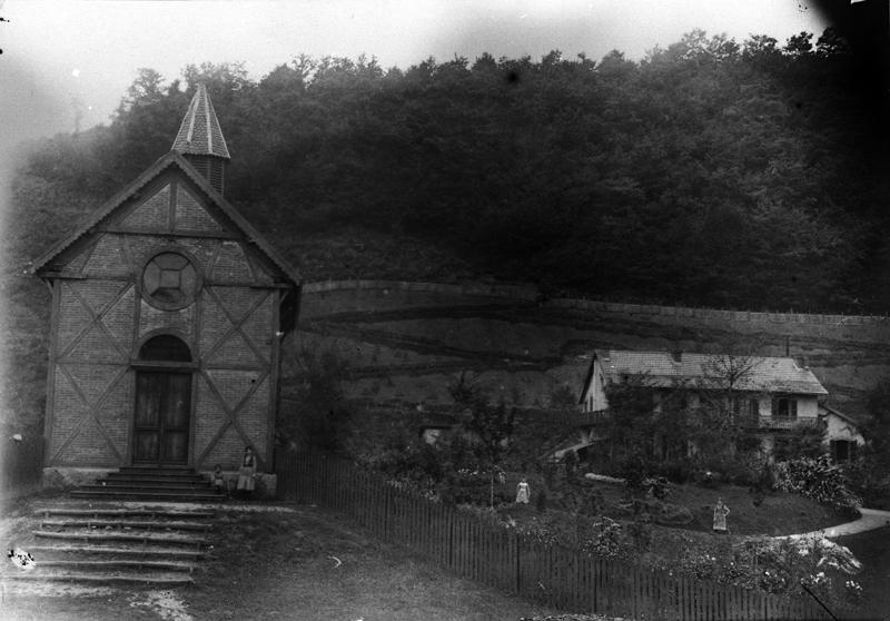La chapelle était située à l'est de l'actuelle rue du 19 mars, à peu de distance de la maison Pochât (propriétaire de la mine) ; les murs était en pan de bois avec un remplissage en brique ; l'abside était couverte d'une croupe polygonale en tuile plate en écaille, la nef était couverte en tuile plate mécanique