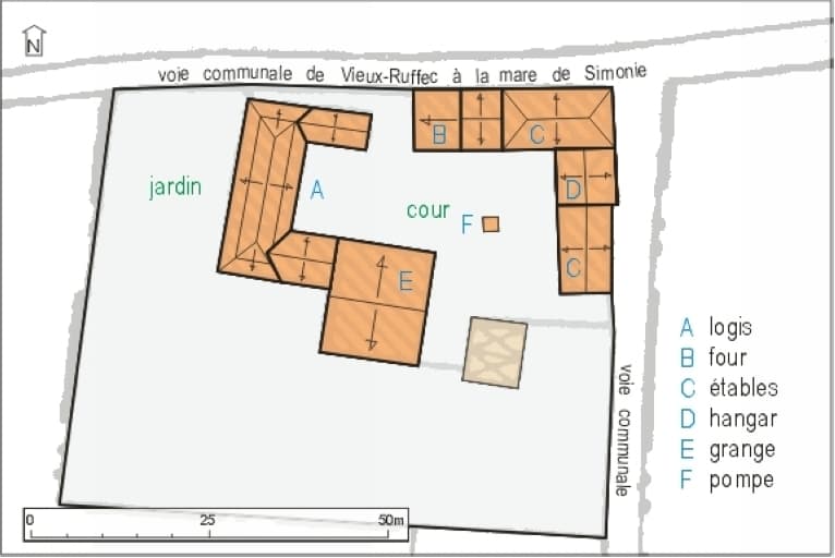 cour ; jardin ; four ; grange ; écurie ; étable ; hangar agricole ; puits