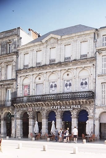 Sujet : pilastres, colonnes, fleurs, feuillage, rubans, têtes de femme, volutes ; support : façades du café et du cinéma ; sujet : colonnes, pilastres, décor végétal, support : décor intérieur du café ; sujet : colonnes, coquilles, décor végétal, masques d'homme, hippocampes, cornes d'abondance, support : décor intérieur de la salle de cinéma.