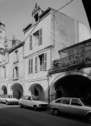 Maison avec cour médiane. La façade est en moellon enduit. Le couloir est latéral et l'escalier, placé dans une aile latéralement à la cour, est en bois et rampe sur rampe.