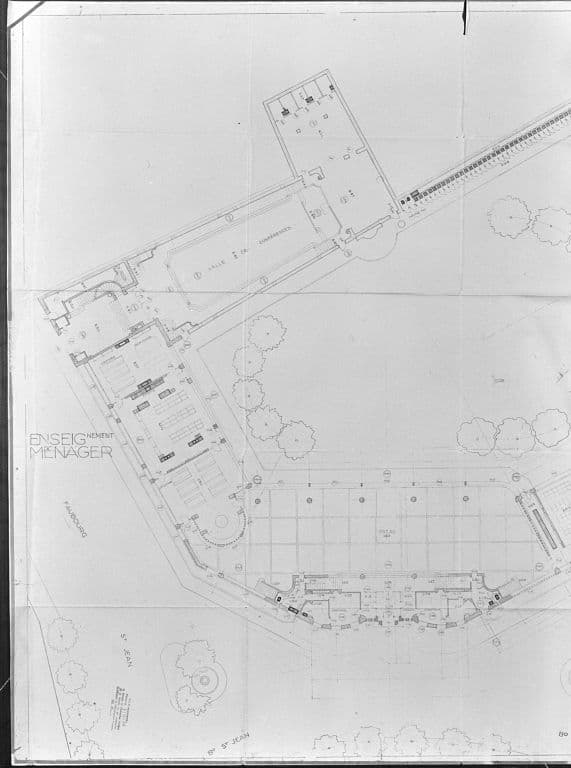 gymnase ; salle des fêtes ; logement ; cour ; jardin fleuriste