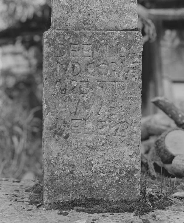 Le socle et le dé du fût pourraient dater du 18e siècle, le fût et la croix ont été refaits dans la seconde moitié du 19e siècle. Le dé porte l'inscription gravée : DE EMILA/ND CORNE/SSE ET / ANNE VELEUR (?).