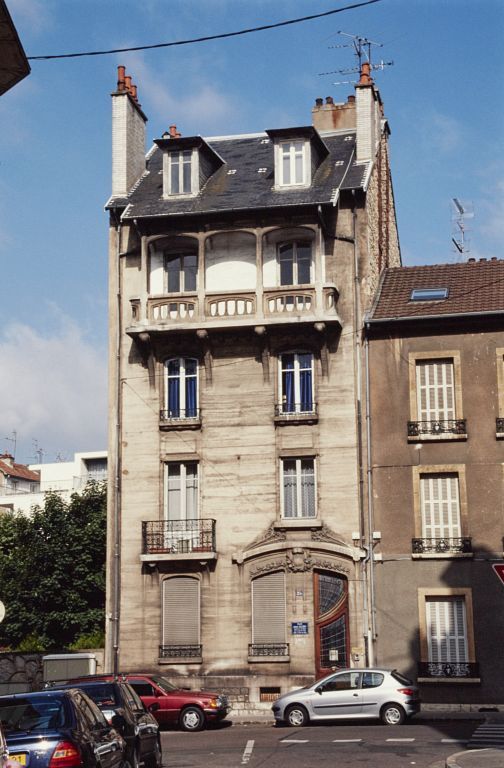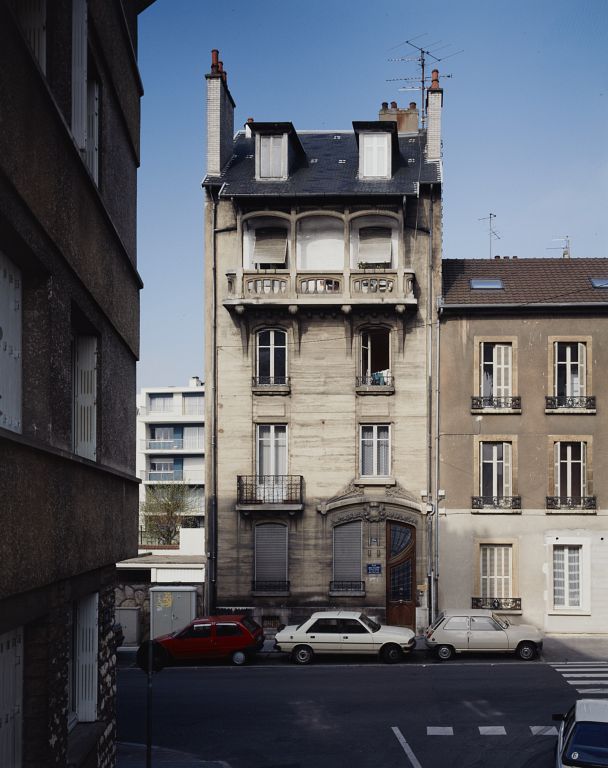 Petit immeuble à trois étages et un comble habitable. Les murs de béton brut laissent apparaître les reprises de banches. Le décor est moulé dans les coffrages. La composition de la façade reste classique. Seul le profond balcon du troisième étage témoigne d'une certaine modernité.