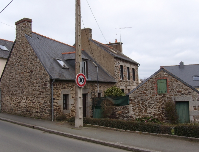 Maison basse mitoyenne et de plan rectangulaire, à deux pièces au rez-de-chaussée, construite en moellons de granite et schiste laissés apparents.