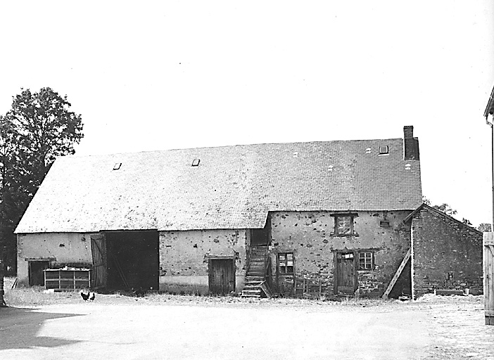 Ferme du 19e siècle (après 1825) à l'origine couverte en chaume. Toiture refaite en ardoise vers 1920. Le logis a été remplacé par une nouvelle maison construite en 1926 (date portée sur la souche de cheminée).