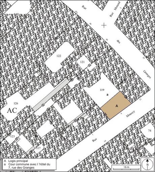 En 1836, la ville avait racheté l'ancienne maison Demolombe s'étendant entre la Grande Rue et la rue des Granges, le long de la ruelle Baron afin d'élargir cette voie. Elle vendit le terrain restant à trois propriétaires. Le troisième lot, à l'angle de la rue des Granges et de la nouvelle rue Moncey, avait été acheté par le marquis de Vaulchier. Il céda la partie d'angle à l'architecte Alphonse Delacroix pour y construire sa maison (voir dossier) et conserva pour lui l'autre partie. Sur celle-ci, il chargea l'architecte Delacroix de bâtir une maison, dont le grand passage cocher donnait accès à l'hôtel qu'il possédait déjà le long de la rue des Granges (50, rue des Granges : voir dossier).