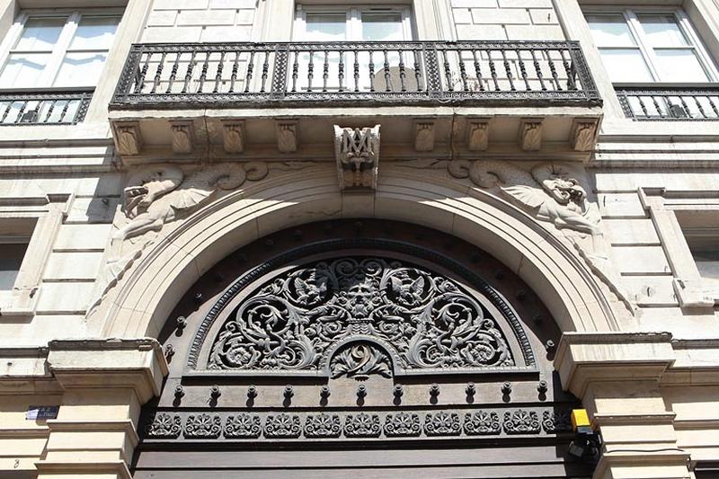 Sur la façade antérieure sont associés un vocabulaire classique, comme le fronton et les baie à crossettes, avec des éléments relevant du fantastique comme les deux dragons ailés avec des pattes en forme d'aile situés de part et d'autre du portail d'entrée. L'immeuble a été protégé MH en même temps que l'hôtel de Mesmay dans lequel il a été inclus.