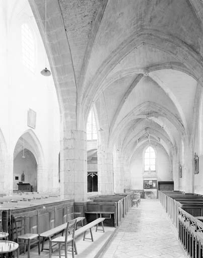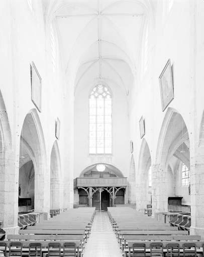 Eglise se composant d'un choeur s'achevant en une abside voûtée en cul-de-four et d'un vaisseau principal flanqué de collatéraux. Ce dernier est épaulé par des arcs-boutants prenant appui sur de puissants contreforts. Le choeur est surmonté d'une tour octogonale à un seul étage percée de baies en arc brisé et sans couverture ; on peut supposer qu'une flèche était prévue, l'épaisseur des murs de l'abside et les quatre piliers du choeur semblent l'indiquer. Une tour carrée à sept niveaux s'appuyant sur des contreforts sommés de pinacles et flanquée d'une tourelle d'escalier s'élève à l'angle sud-ouest. Voûte du vaisseau principal en briques à augets, voûtes des collatéraux en pierre, carrelage du 18e siècle, toit en ardoise de Trélazé (Maine-et-Loire) , chapelle nord couverte de tuiles.