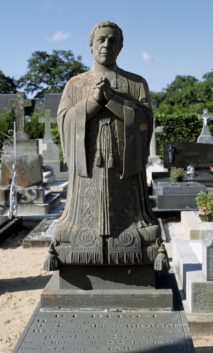Oeuvre placée à proximité de la croix du cimetière.Tombe de Jean-Marie Drogou, recteur de Clohars-Carnoët mort en 1891. Sculpture signée Yann Larhantec de Landerneau.