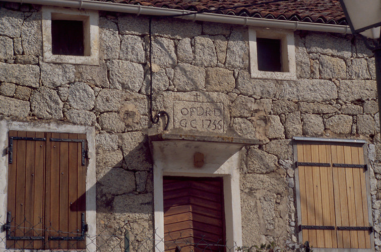 Maison construite en 1756 comme l'indique la date portée sur l'édifice complétée des initiales "O.F.D.R.D./G.C.". Remaniée au cours du 20e siècle.