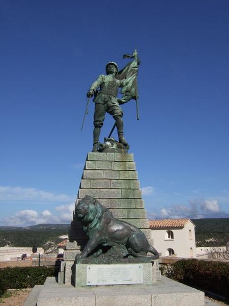 En 1908, le sculpteur normand Robert Delandre réalise un monument aux morts pour la ville de Saïda en Algérie. Il est destiné à rendre hommage à tous les morts des unités ayant participé à la conquête de l'Algérie : Spahis, Chasseurs, Zouaves, Légionnaires, Tirailleurs. Lorsque la décision fut prise d'installer la Légion en Corse, c'est l'unité de la Légion en garnison à Saïda, qui démonta le monument afin de le ramener à Bonifacio, en 1962. La municipalité conduite par Don-Mathieu Tramoni, avait pour charge d'aménager une place pour l'installation de l'oeuvre. L'entreprise Brunelli réalisa le socle en granite. Après le départ définitif de la Légion, en novembre 1983, le monument est confié à la commune.