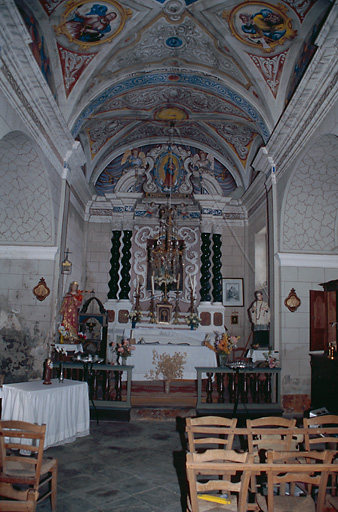 Edifice de plan allongé, à la nef formée d'un vaisseau couvert d'une voûte en berceau à lunettes et de chapelles latérales couvertes de voûtes en berceau plein-cintre. Choeur, séparé de la nef par une balustrade en bois, couvert d'une voûte en berceau à lunettes